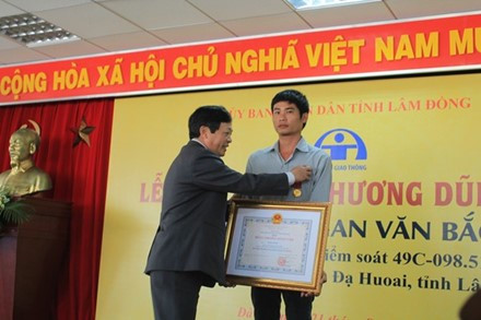 Cuối cùng thì hành động dũng cảm của tài xế Phan Văn Bắc cũng được ghi nhận ở cấp cao nhất các bạn ạ! Hôm qua, thừa ủy quyền Chủ tịch Nước, ông Đoàn Văn Việt (Chủ tịch UBND tỉnh Lâm Đồng) đã trao Huân chương dũng cảm cho tài xế Phan Văn Bắc.
